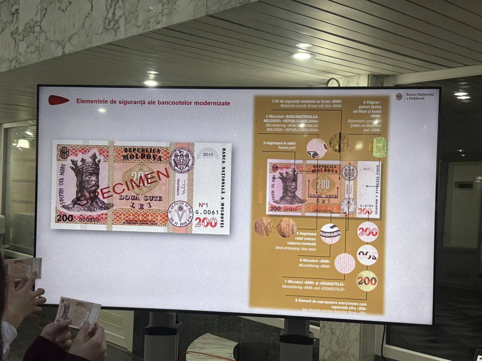 Interesantă a fost discuția despre securitatea bancnotelor și metodele de prevenire a falsificării acestora. Elevii au aflat cum să recunoască elementele de siguranță ale leului moldovenesc și de ce este important să fie vigilenți în tranzacțiile lor financiare.
